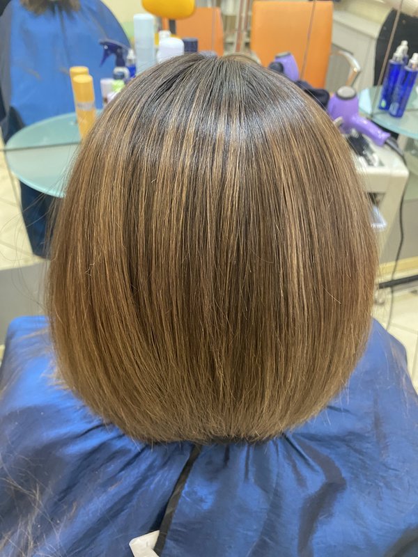 Я довольна общением 5++++ мастером стилист профессионал !. Могу отметить, что волосы лежат, их удобно укладывать, они легкие и красивые, да и удобно мне с ними теперь. Однозначно рекомендую салон и буду обращаться сама еще !!